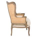 Stylowy fotel typu uszak, z gustownym oparciem z plecionki wiedeńskiej. Siedzisko z wygodną poduchą. Stylowe, gięte, ręcznie rzeźbione nogi. Mebel w stylu angielskim. Sprawdź także sofę z kolekcji England, która w połączeniu z fotelem stanowi doskonały komplet.