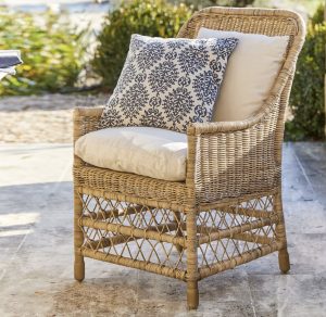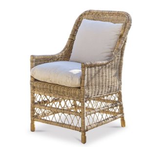 Ten wspaniały fotel rattanowy, który nie tylko gwarantuje dużą wygodę, ale również emanuje szlachetną naturalnością. Piękny splot w romby w dolnej części nadaje designowi atrakcyjną lekkość. Dzięki niskim podłokietnikom i lekko wygiętemu oparciu fotel uosabia ponadczasową, wzbogaconą o wygodne detale elegancję. Miękko tapicerowana poduszka siedziska i przytulnie wypełniona poduszka oparcia pokryte są wytrzymałą tkaniną bawełnianą. Meble rattanowe stanowią wspaniały wizualny kontrapunkt dla masywnych stołów. Należy jednak je chronić przed zbyt dużą wilgocią – dzięki temu będą dawać Ci ogromną przyjemność przez wiele lat. Teraz już nic nie stoi na przeszkodzie, aby spełnić Twoje marzenie o doskonałej atmosferze. Możesz więc spokojnie zanurzyć się w fotelu, zamknąć oczy i posłuchać radosnego świergotu ptaków.