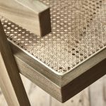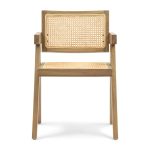 Krzesło do jadalni z podłokietnikami ma elegancki wygląd. Krzesło to jest jednocześnie nowoczesne i ponadczasowe. Rama została ukształtowana z drewnianego wiązu, a siedzisko i oparcie wykonano z autentycznej skóry rattanowej.