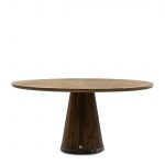 Wspólne posiłki stają się jeszcze przyjemniejsze przy stole do jadalni Siroko Beach. Ten okrągły stół wykonany jest z odzyskanego drewna dębowego. Posiada ręcznie inkrustowany blat, przypominający klasyczną zamkową podłogę, połączony z elegancką nogą w kształcie stożka.