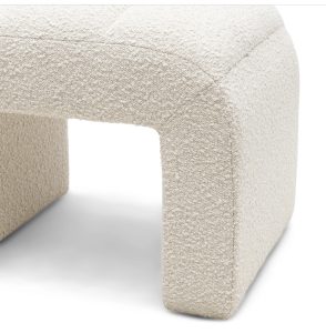 Jest to przedłużenie ławki do jadalni z serii San Remo. Wykonany z tkaniny bouclé w kolorze białego piasku, ten stołek będzie przyciągał wzrok w domu. Użyj stołka jako dodatkowego siedzenia lub stolika bocznego: można go używać do wielu celów.