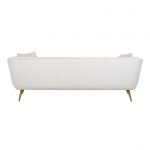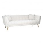 Sofa Huxley to solidnie wykonana sofa z drewnianej ramy i modnej białej tapicerki bouclé (100% poliester). Szczotkowane złote nóżki ze stali nierdzewnej dodają jej charakteru i elegancji. Bouclé to najmodniejsza tkanina sezonu.