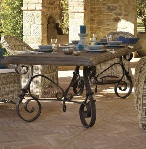 Ciężki stół błyskawicznie stanie się centralnym punktem ogrodu lub tarasu i ulubionym miejscem spotkań rodziny i przyjaciół. Ciężka rama została wykuta ręcznie z żelaza. Brązowy laserunek odbiera nieco ciężkości surowemu metalowi, który gwarantuje stabilność i ponadczasowe piękno stołu. Ciężki blat wykonano z mieszanki kamieni. Naniesiona antyczna patyna daje wrażenie, że stół starzał się naturalnie przez wieki. Również szara kolorystyka blatu sprawia, że ten uroczy stół ogrodowy zdaje się prawdziwym cudem. Bo pasuje zarówno do krzeseł żeliwnych, jak i mebli rattanowych czy nowoczesnych dodatków. Najlepsze jest to, że wreszcie masz wystarczająco dużo miejsca, aby zgromadzić wszystkich swoich bliskich wokół jednego stołu. Stół oferuje miejsce dla dziesięciu do dwunastu osób.