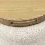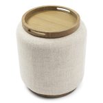 Stolik z dopasowaną tacą jest idealnym dodatkiem do Twojego salonu. Stolik ma pokrycie poliestrowe, a taca wykonana jest z drewna wiązu. Mebel przyda się na przekąskę i drinka, ale także ładne miejsce do zaprezentowania dekoracji. Pufa i taca mogą być używane razem lub osobno.