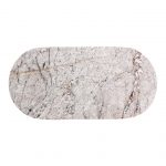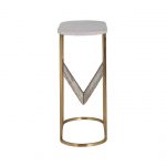 Nowatorski stół wykonany jest z naturalnego jasnego marmuru z naturalnym unikalnym wzorem. Stelaż o eleganckim klasycznym kształcie wykonany z metalu w kolorze złotym z dodatkową półką na czasopisma i gazety.