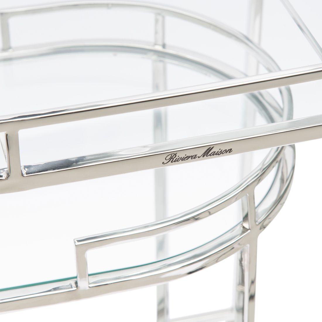 Wózek barowy Crosby Street to luksusowy zestaw dwóch stolików bocznych. Zaprezentuj swoje najpiękniejsze szklanki i dzbanki i podawaj napoje na stołach z owalnymi szklanymi blatami i otwartymi krawędziami. Oba wózki mają kółka, dzięki czemu można je przesuwać i nakładać na siebie, gdy ich nie używasz. Ramy wykonane są ze stali nierdzewnej.